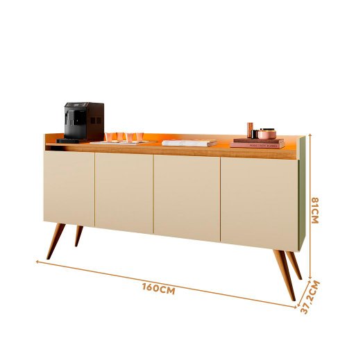 Os móveis são um dos principais elementos na organização e decoração de um ambiente. O Aparador Gold 4 Portas foi concebido para adicionar design a uma sala de estar ou de jantar, mas a sua versatilidade permite que sejam utilizados em qualquer ambiente da sua casa ou escritório. Possui um interior espaçoso para guardar itens de uso diário como copos, garrafas e talheres. MDP de qualidade premium é utilizado para aumentar a durabilidade do produto.