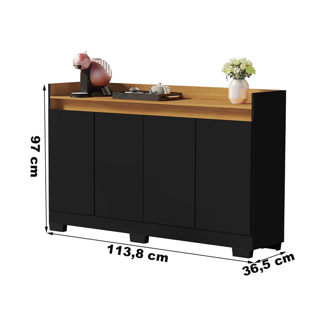 O Buffet Real 4 Portas é o móvel perfeito para quem busca funcionalidade e elegância. Com seu design clássico e versátil, ele se adequa a diversos ambientes e decorações, tornando-se uma peça coringa na sua casa. Com suas 4 portas e amplo espaço interno, você pode armazenar utensílios domésticos, bebidas, cafeteiras e ainda utilizar o tampo resistente para colocar decorações e objetos que combinem com a sua decoração. Produzido em MDP, é resistente e de alta qualidade, garantindo a durabilidade do produto.