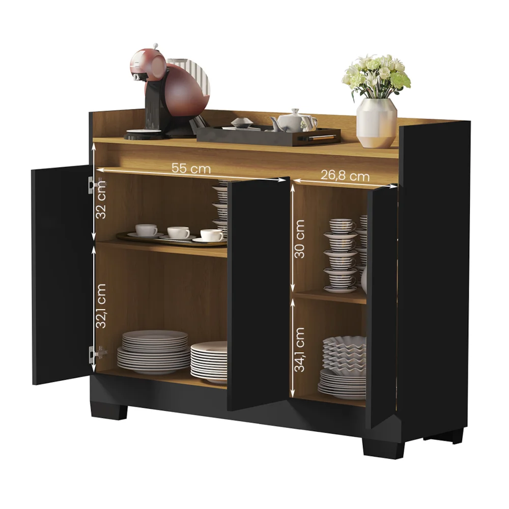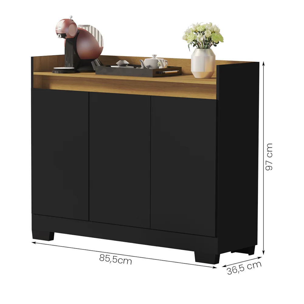 Buffet Real 03 Portas Preto/Mel
