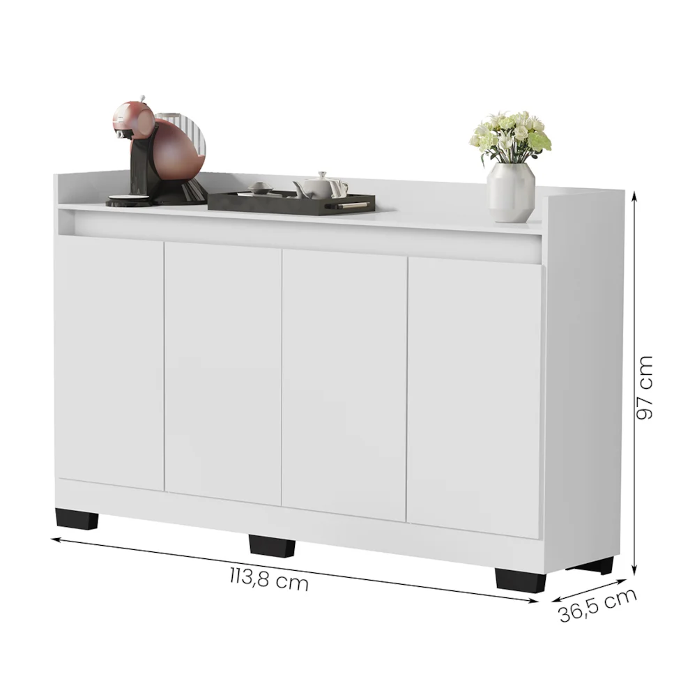 O Buffet Real 4 Portas é o móvel perfeito para quem busca funcionalidade e elegância. Com seu design clássico e versátil, ele se adequa a diversos ambientes e decorações, tornando-se uma peça coringa na sua casa. Com suas 4 portas e amplo espaço interno, você pode armazenar utensílios domésticos, bebidas, cafeteiras e ainda utilizar o tampo resistente para colocar decorações e objetos que combinem com a sua decoração. Produzido em MDP, é resistente e de alta qualidade, garantindo a durabilidade do produto.